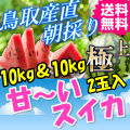 【商品名】もぎたて三重奏甘さ+コク+シャリ感 直ちゃんの鳥取大栄すいか 4L 2玉 送料無料