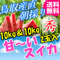 【商品名】鳥取産直・朝採り甘~い大栄スイカ 秀 4L(10kg)2玉 送料無料